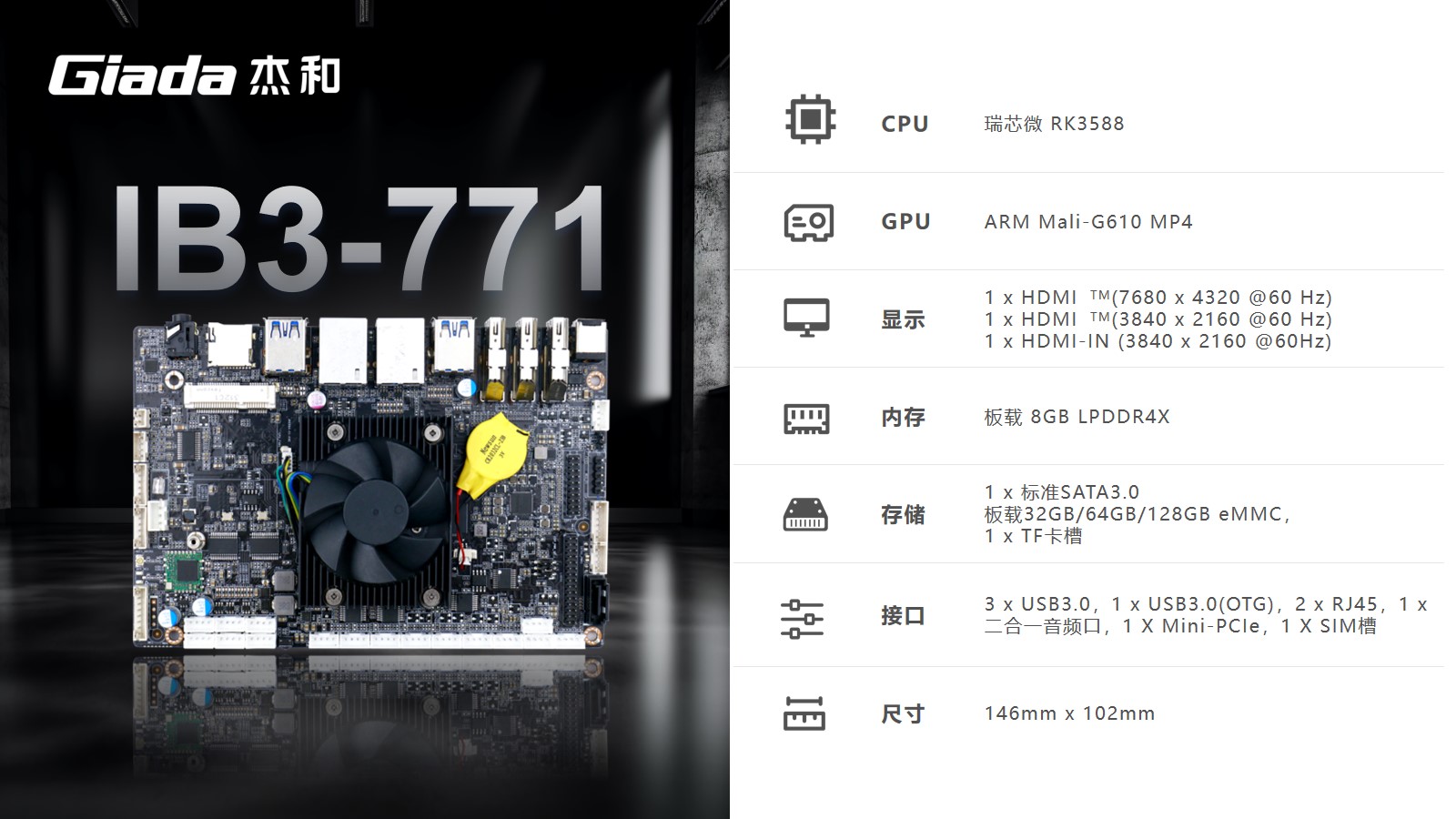 本次杰和科技高交会展示的工业计算机主板IB3-771、IB3-761,搭载了Rockship的芯片,可应用于工业自动化、物联网解决方案和汽车系统,已经被多数客户部署在工厂车间以及物联网生态系统的智能设备中。