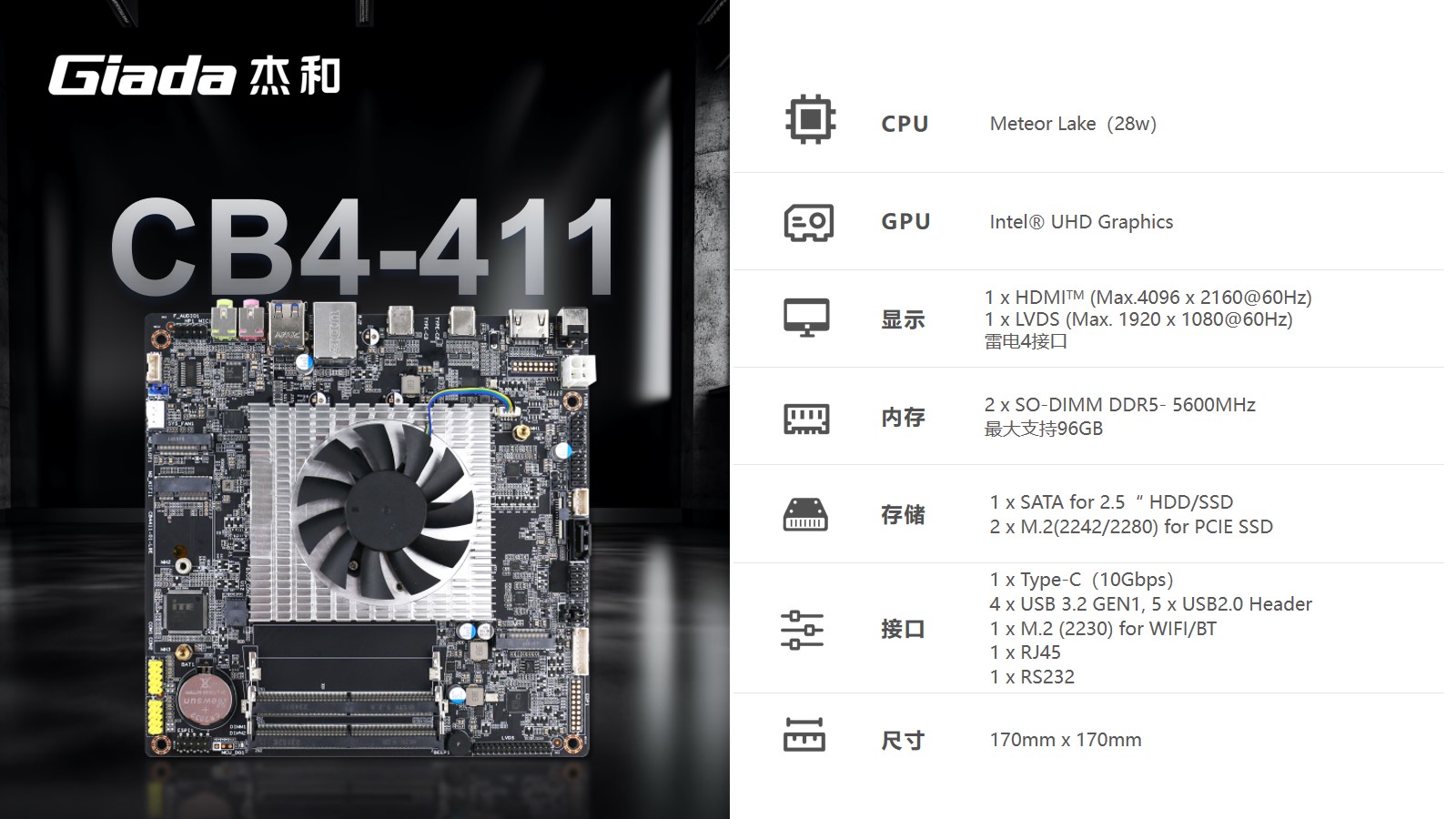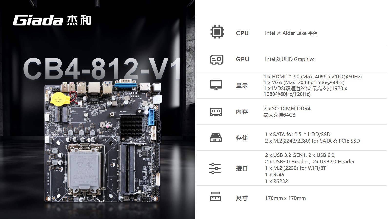 在商用计算机主板领域,一体机主板CB4-411、CB4-812-V1是杰和科技为一体机客户打造的专用主板,杰和科技CB4-411支持Intel® Meteor Lake平台处理器、CB4-812-V1支持Intel® Alder Lake 平台处理器,这类主板具有灵活性和适用性,客户可以根据特定需求进行主板的个性化配置。