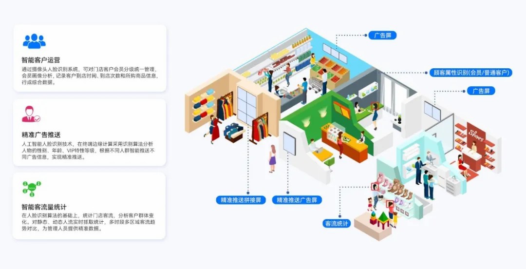为了解决广告无法个性化展示的问题,杰和科技中央大数据管控系统全面收集顾客的各种信息,包括消费偏好、购买历史、浏览习惯等,通过摄像头人脸识别,终端边缘计算分析人物的性别、年龄、VIP级别等,根据特征智能推送不同的广告信息,实现精准推送。例如,系统分析出顾客 A 经常购买运动类产品且对某品牌运动鞋有较高忠诚度,遂推送相关的广告促成消费。同时,通过对广告投放效果的实时监测和数据反馈,不断优化广告投放策略,进一步提高广告的个性化精准度。