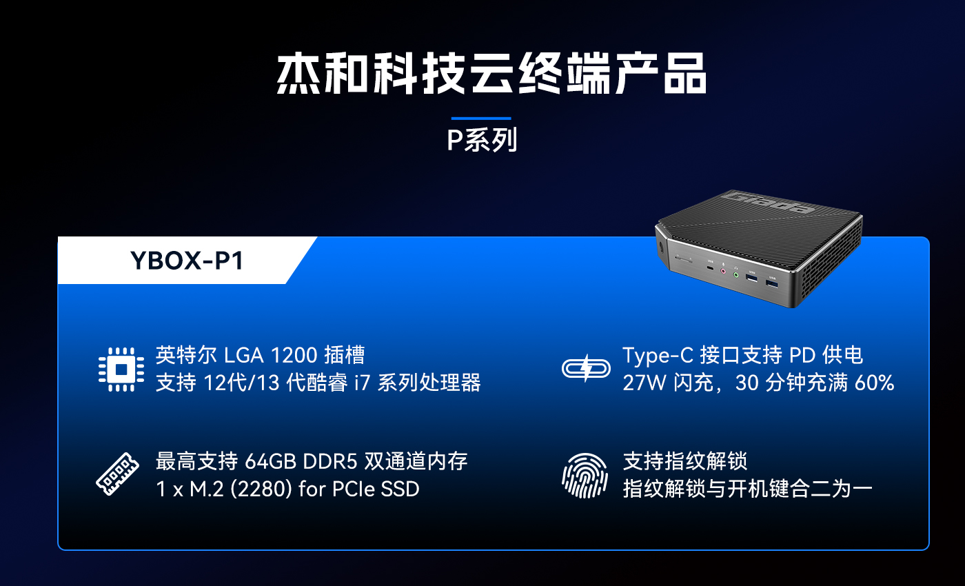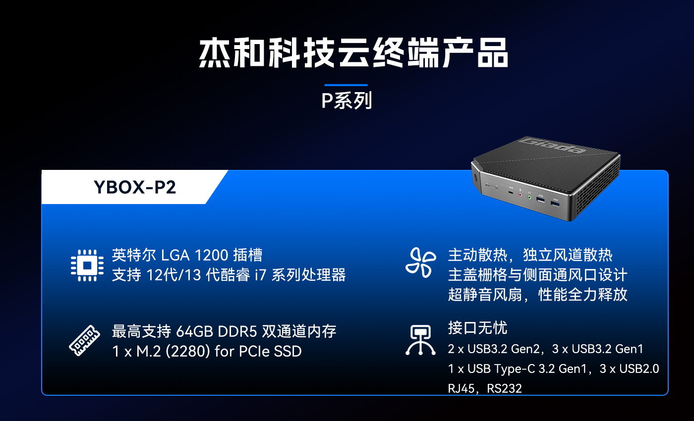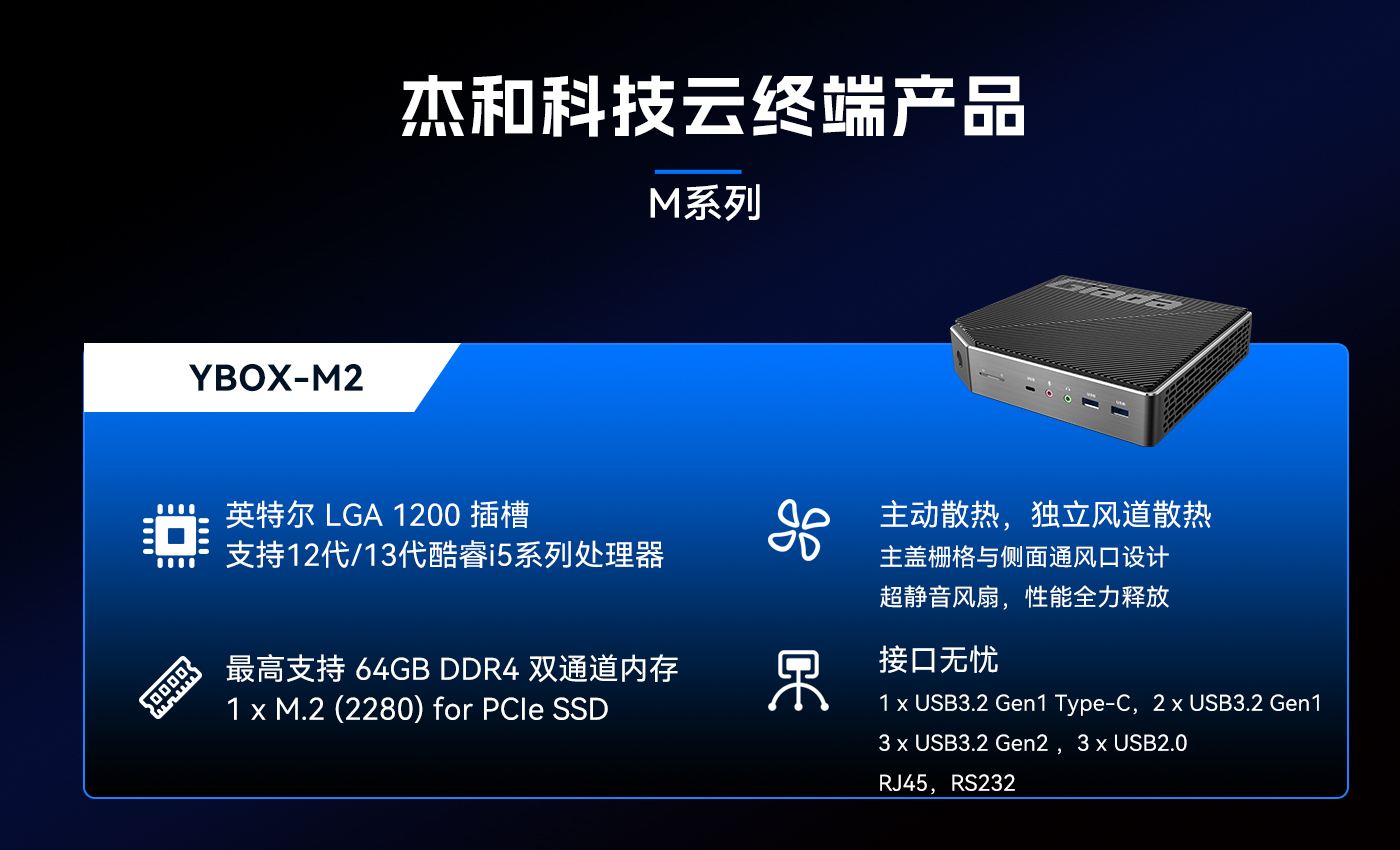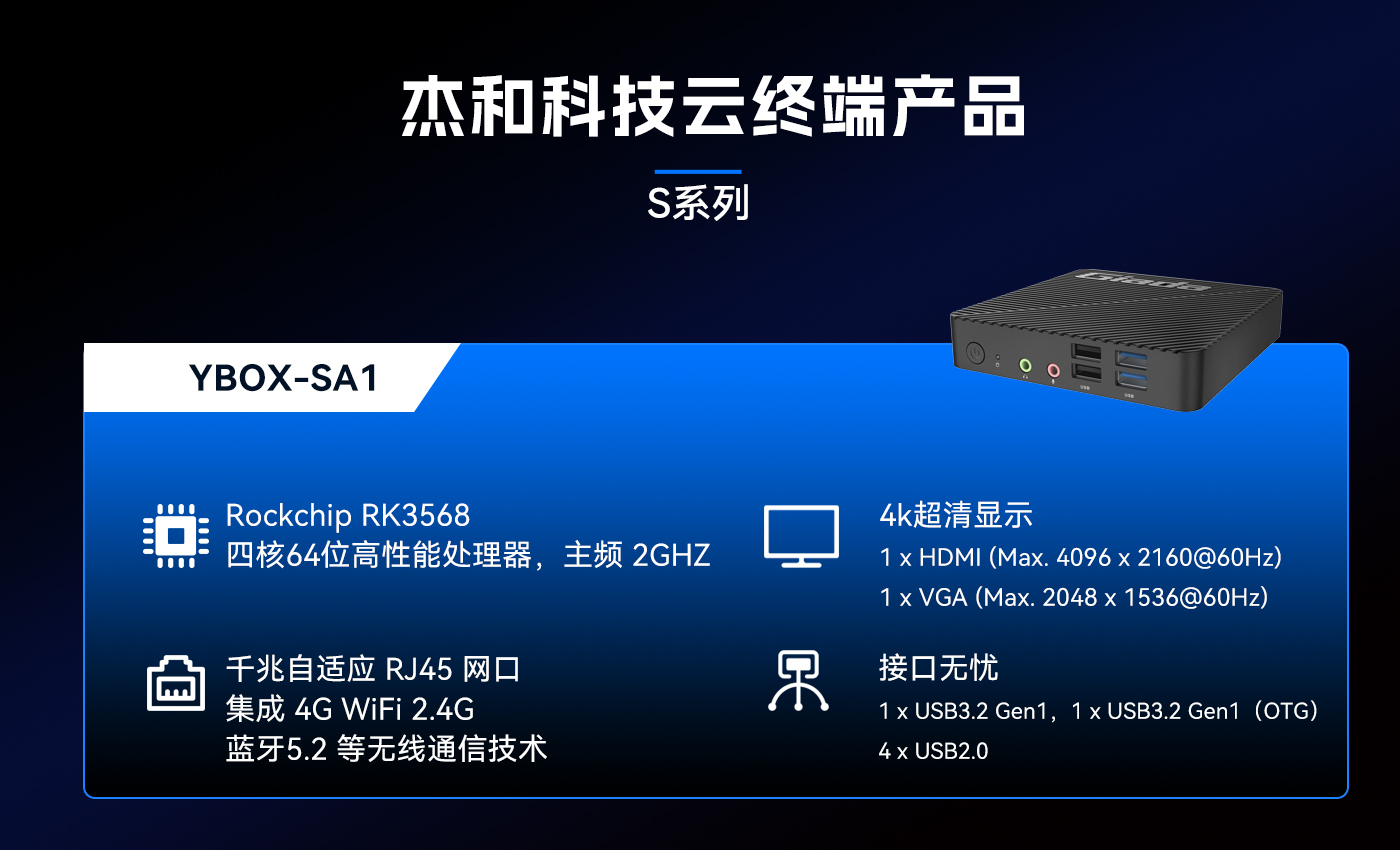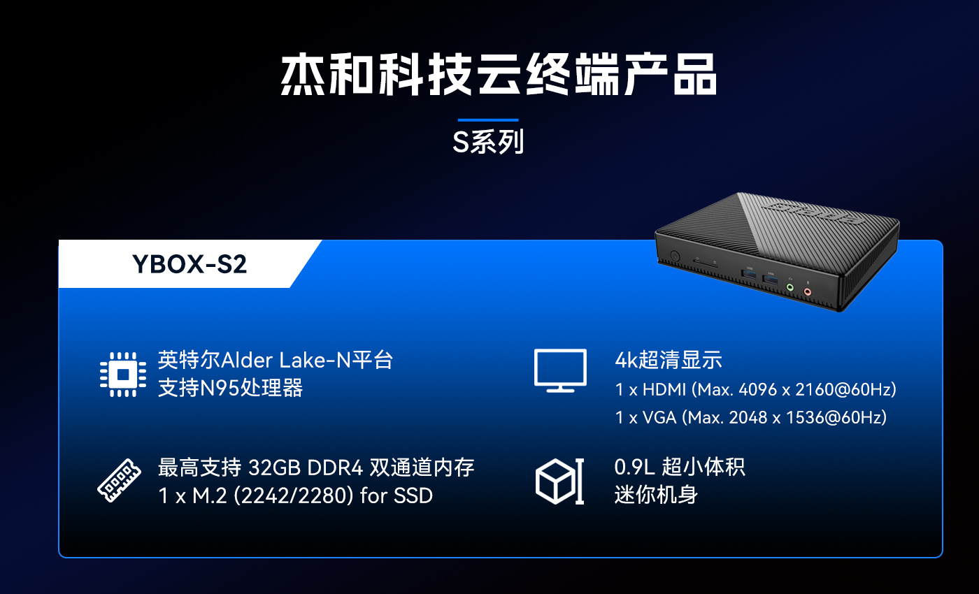 杰和科技云终端产品根据应用场景,分成了YBOX系列和VT系列。