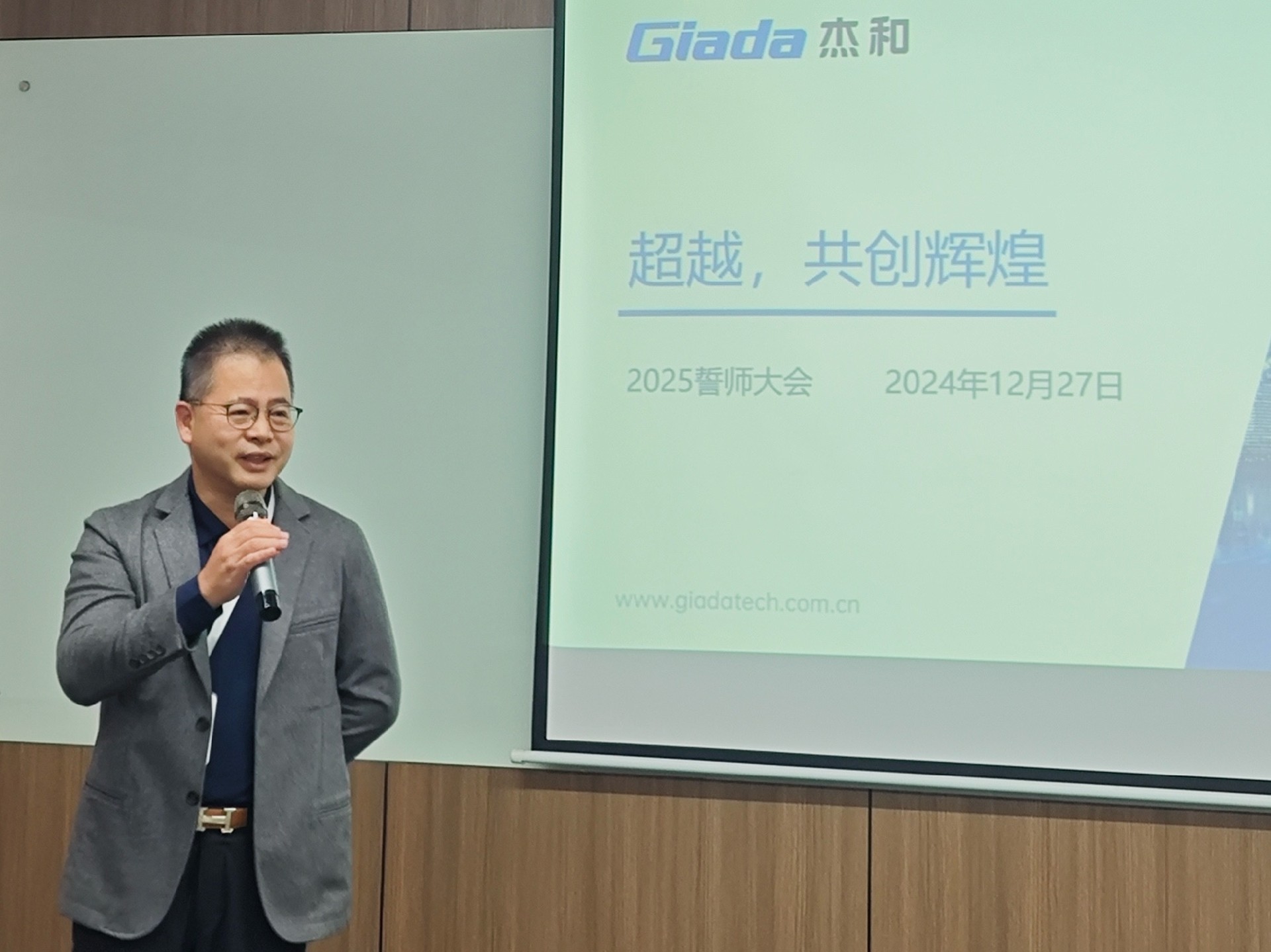 2024年12月27日,杰和科技召开了主题为“蓄势新动能,勇闯新高度”的2025年度经营工作会暨誓师大会。公司高管、一级部门负责人、国际/国内营销中心全体员工齐聚一堂,聚焦2025年战略方向,明确2025年工作目标和实施计划,同步启动军令状签署仪式、年度PBC签订仪式,为新一年的发展吹响前进的号角。