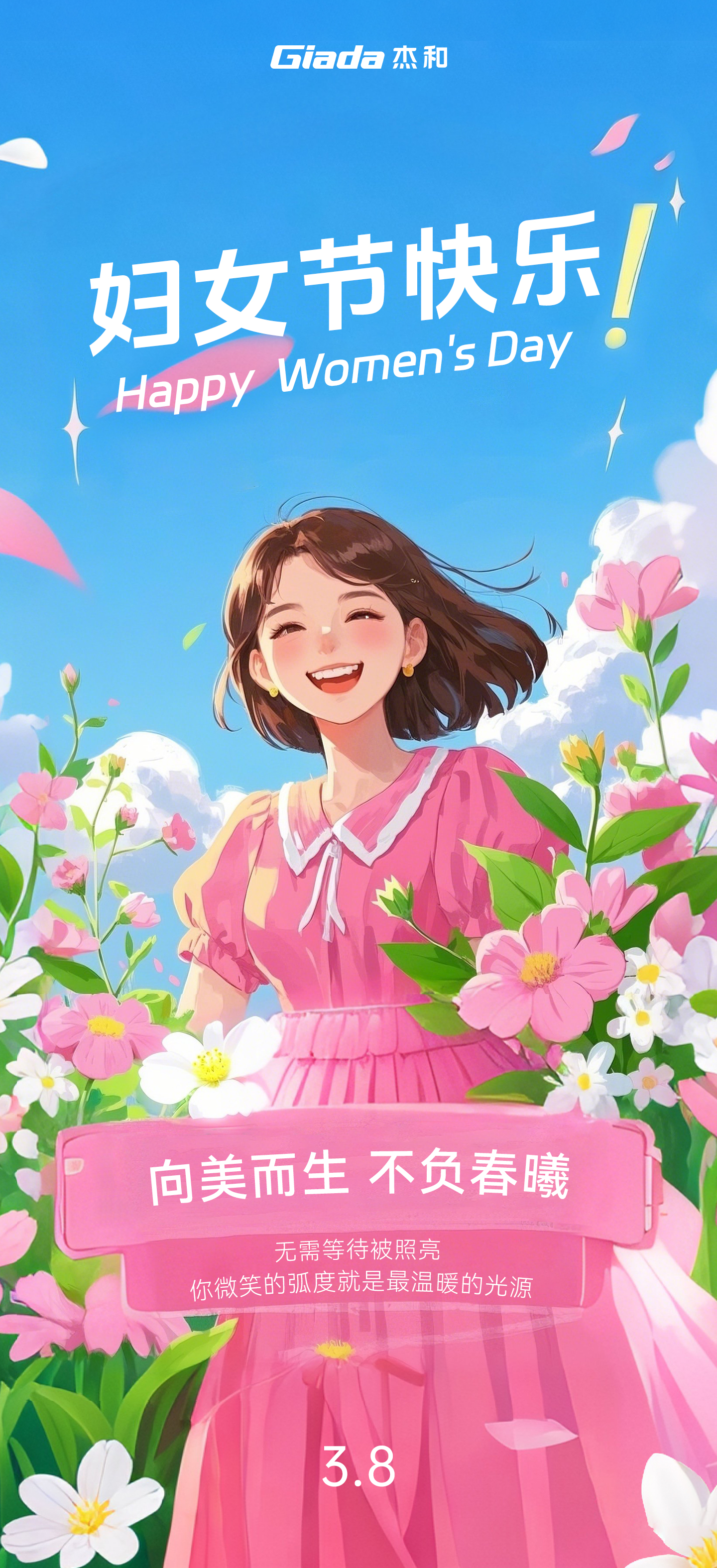 杰和科技祝所有女性妇女节快乐,眼中有星光,指尖有力量,胸中有自成宇宙的坐标系
