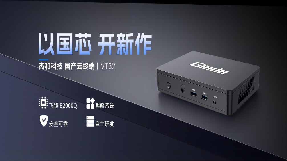 此前杰和科技已推出搭载飞腾E2000Q芯片的云终端VT32,并与麒麟V10操作系统深度适配,提供安全可信的解决方案。