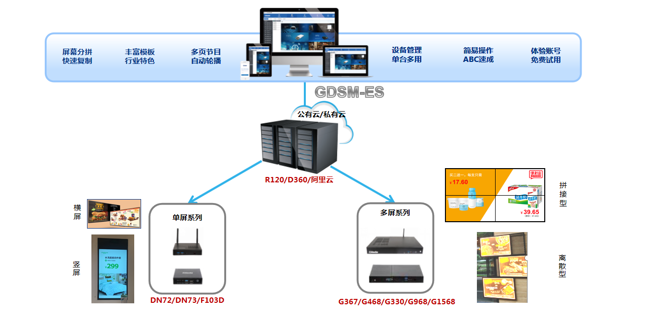 除了提供软件,杰和科技还可提供与该系统适配的媒体播放器,从商用级到工业级,从2k分辨率到4K分辨率,从多屏拼接墙到单屏点餐牌,从外挂播放器到可插拔模块,品类齐全。