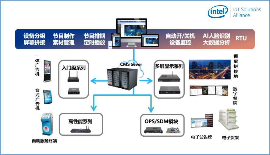为了更好的迎合行业的发展趋势,向零售业输送前沿的营销理念和模式,驱动零售行业迈向数字化、智慧化的运营模式,杰和科技经过多年的行业经验积累和对客户需求的探索,通过集成Intel®Movidius视觉识别技术和OpenVINOTMAI视觉学习技术,自主研发了一套GDSM智慧商显管理系统平台,加上杰和科技多年来在商显行业的产品开发经验,已整合成为一套完整的智慧商显整体解决方案。目前GDSM智慧商显解决方案已成熟的应用于商超零售、品牌餐饮等多个行业,并获得了Intel®MRS市场方案认证。