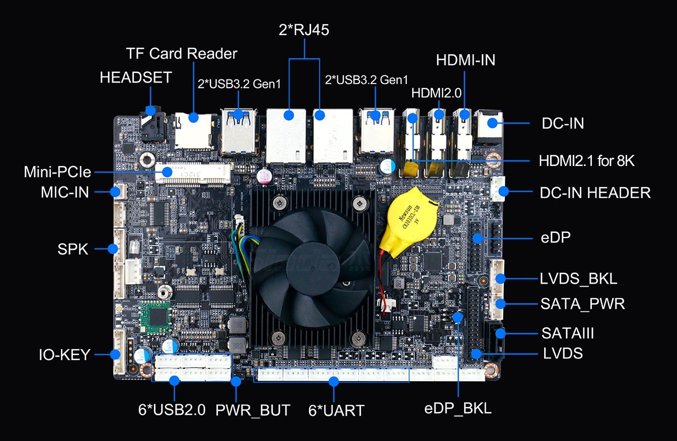 可广泛应用在机器人、边缘计算、智能NVR、智能汽车、智慧大屏、AR/VR、ARMPC、智能自助终端等AIoT行业类应用市场。