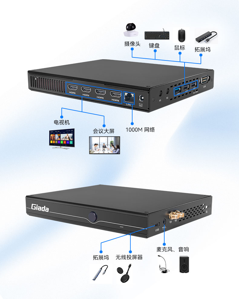 会议室是企业不可或缺的空间配备,无论是商务洽谈、视频会议、企业培训还是日常工作,每个企业都需要拥有一个“聪明”的会议室。但是传统的会议室设备,因为设备之间兼容性、画面不清晰、会议卡顿等问题,造成低质低效体验感不佳的会议体验。杰和智能会议主机拥有多功能一体化设计、高性能、高速网络、高扩展性等特点,轻松打造智能会议协同环境。