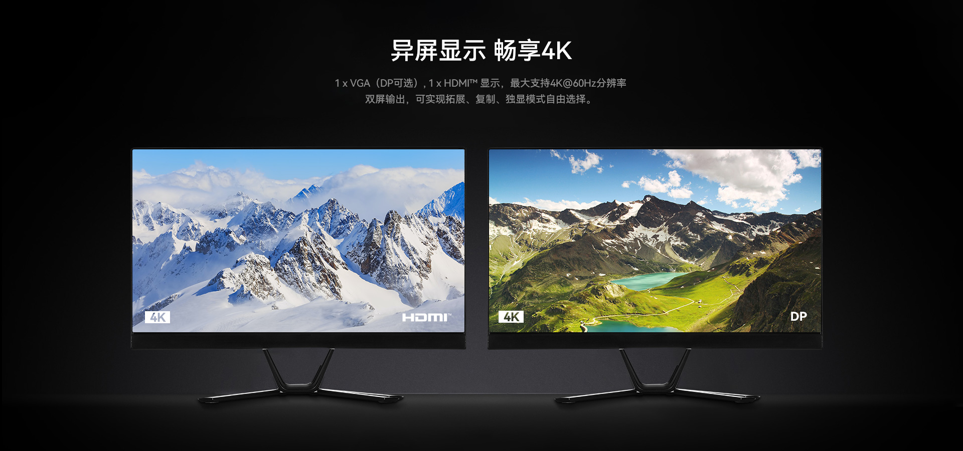 | 视频接口 | 1 x HDMI™(Max. 4096 x 2160@60Hz) 1 x VGA (Max. 1920 x 1080@60Hz) or DP (Max. 4096 x 2304@60Hz) | |