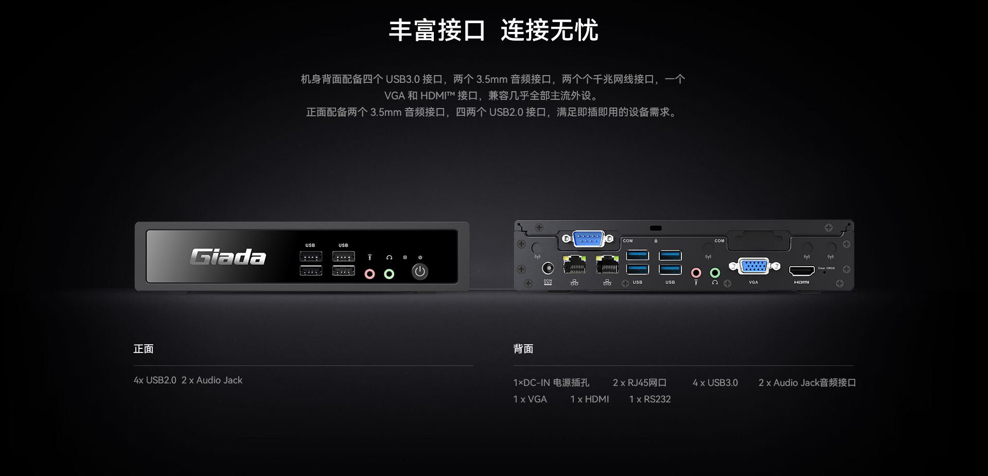 | 音频接口 | 4 x Audio Jack(前后各2个) | |