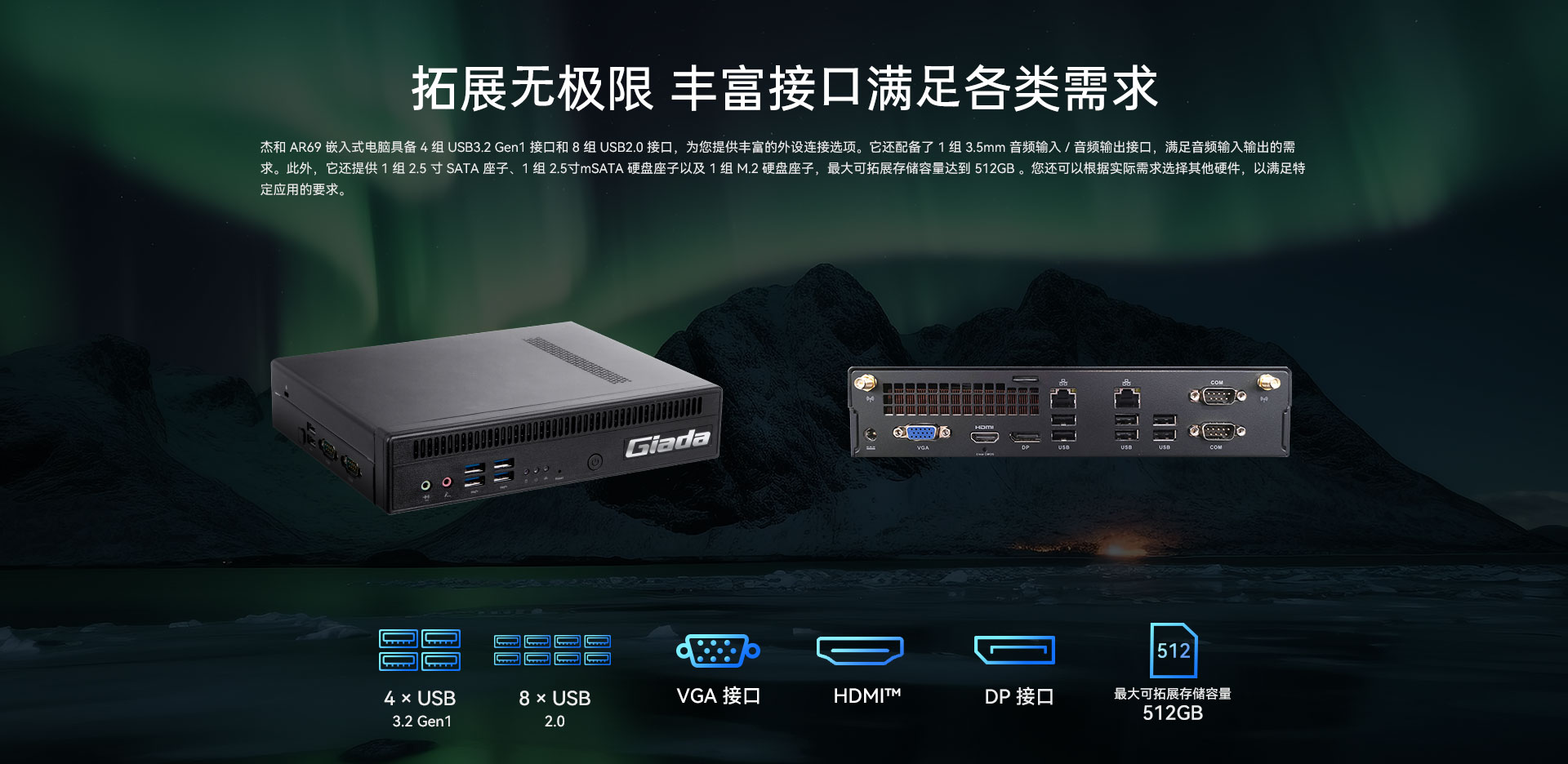 | 视频接口 | 1 X HDMI(Max.4096 x 2160@60Hz) 1 X DP(Max.4096 x 2160@60Hz) 1 X VGA(Max.2560 x 1600@60Hz) | |