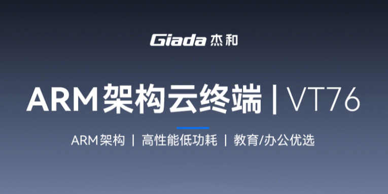 杰和科技ARM云终端——VT76,搭载瑞芯微RK3576 4核64位处理器,2.0GHz主频,6W功耗。 支持VDI、RDS架构,数据不落地,适合更多国产安全要求高的场景,机身仅0.7L超小体积,支持壁挂隐藏设计,轻松融入教育办公环境!